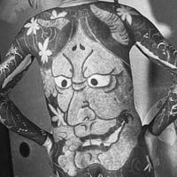 🇬🇧 Tattoo of a hannya mask with momiji leafs by Horiuno I, c. 1955, Tokyo. ©Akimitsu Takagi